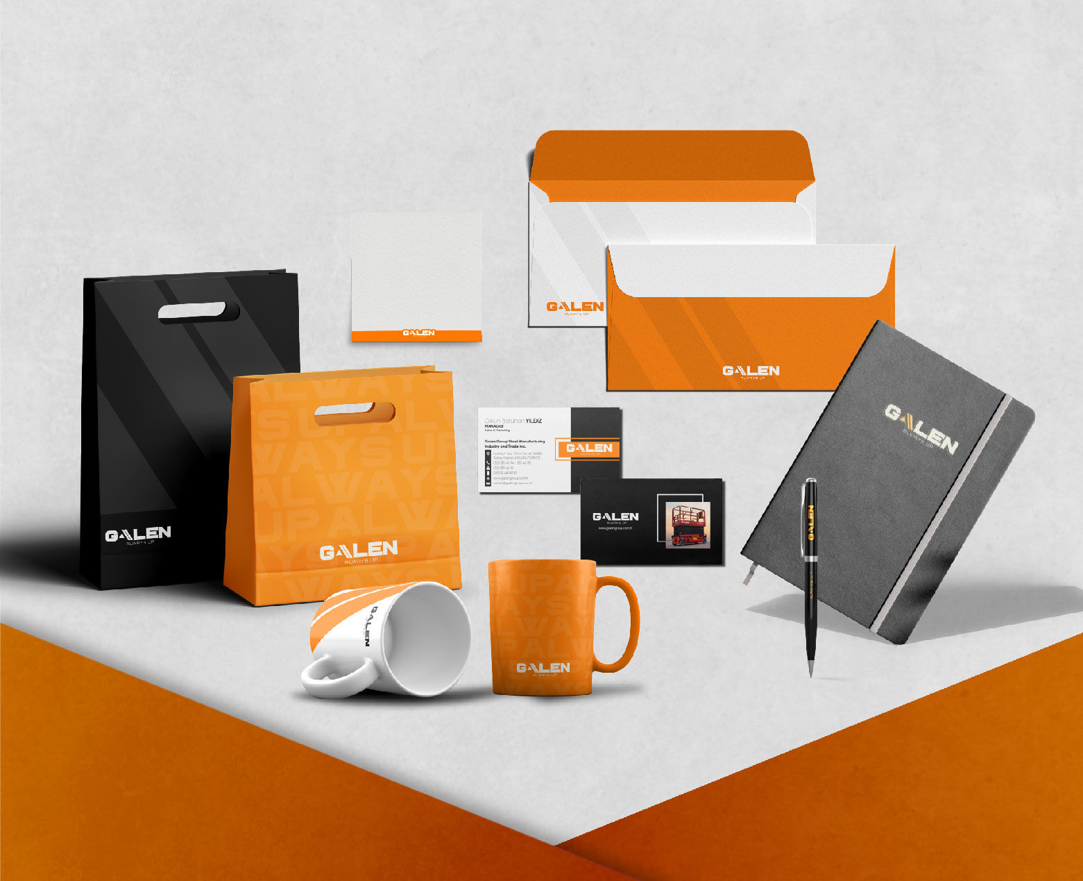 Bir markanın hikayesi, onun kurumsal kimliğiyle hayat bulur. Galen markasını dinamik ve güçlü bir kurumsal kimlik ile buluşturarak sektörde kendine özgü bir yer edinmesini sağladık. Turuncu ve siyah gibi çarpıcı renkleri kullanarak markanın enerjik ve etkileyici duruşunu yansıttık. Her detayı titizlikle planlanan kurumsal kimlik setimiz, profesyonellik ile estetiği bir araya getiriyor. Bu sayede Galen, sadece sektörde fark edilmekle kalmıyor, aynı zamanda güçlü bir izlenim bırakıyor.